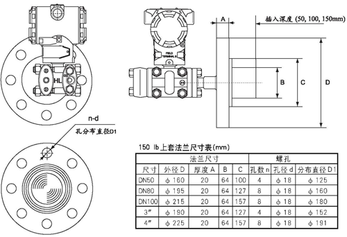 法蘭尺寸 | 插入長度 | 高壓側膜片材料 | |||||||||||